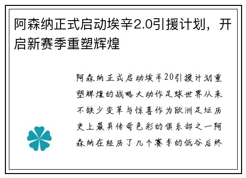 足球联赛作为体育界最具吸引力的盛宴之一,正站在新的历史起点上。随着科技的飞速发展和全球化的深入推进,传统的足球联赛正迎来一次革命性的变革,未来的足球赛场将不仅仅是球员与裁判的角逐,更是科技与文化交融的舞台。 科技创新将成为推动足球联赛未来的核心动力。虚拟现实(VR)和增强现实(AR)技术已经开始在观赛体验中展现其威力,未来球迷们可以戴上VR装置,仿佛置身于现场,零距离感受比赛的每一次冲刺与扣杀。这...